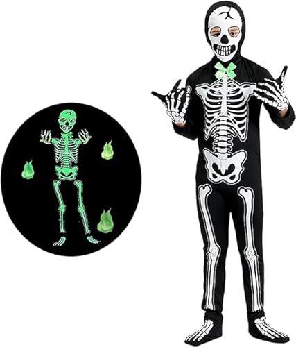Ruisy Kinder Halloween Skelett Kostüm mit Skelett Maske und Handschuhe, Halloween-Kostüme für Verkleidung Karneval Mottoparty (L)