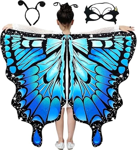 XIABYAYU Schmetterlingsflügel Kinder, Schmetterling Kostüm Kinder, Schmetterling Umhang Kinder mit Maske und Haarreif, Schmetterling Kostüm Mädchen für Karneval, Tanzkostüme, Rollenspiele