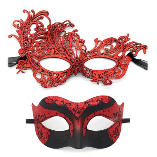 YUYWWAN Venezianische Maske Paare, 2 Stück Masquerade Mask Herren Damen Karneval Maskenball Glänzend Venedig Maske für Maskeradepartys Kostüm Zubehör (Rot)