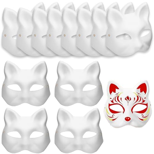 zrfgbxim 12 Stück Katzenmasken, Therian Mask, Fuchs Maske, Weißes DIY Masken zum Anmalen, DIY Papier Maske, Leere Cat Mask für Halloween Cosplay Maskerade Party Maskenball Masken Unbemalte Stütze
