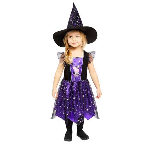 Mit diesem Kostümset, der Firma Amscan, verwandelt sich Ihr kleines Mädchen in die Hexe aus der Kinderserie Peppa Pig Im Lieferumfang enthalten sind das Kleid und der große, schwarze Hexenhut Das Kleid ist in Fransen-Optik und in den Farben Lila und Schwarz gestaltet. Auf Brusthöhe ist das Schweinchen Peppa Wutz abgebildet Der Hut ist mit silber- und lilafarbenen Sternen verziert. Des Weiteren ist der Kopf von Peppa Wutz mehrmals zu sehen Das Kostümset ist in verschiedenen Größen erhältlich Das Kostümset entspricht der Größe 92 cm und ist somit für Kinder von circa 12 bis 24 Monaten geeignet, Hersteller: Amscan