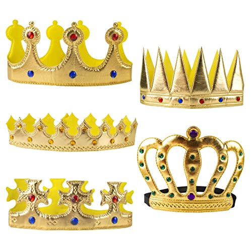 AWAVM Krone König 5 Stück Geburtstagskrone Kinder Gold Königskrone Krone mit Strass Royal Crown,Requisiten König und Königin Krone Prinzessin Tiara Kostüm Zubehör für Kostüm Geburtstag Party