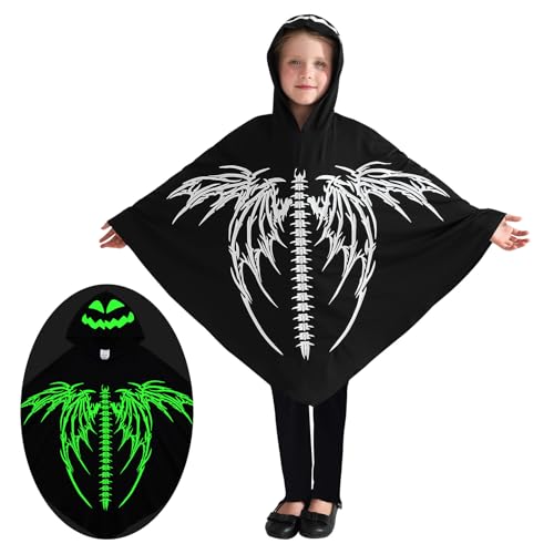 ESHOO Halloween-Skelettumhang für Kinder, Kleinkinder, im Dunkeln leuchtender Kapuzenumhang, Halloween-Flügel, Poncho, Umhang, Cosplay, Rollenspiele