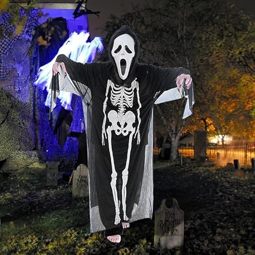 Leonshco Halloween Kostüm 90cm, Gruseliges Zombie Kostüm Kinder Geister Kostüm Skelett, Halloween Kinder Kostüm, Kinder Junge Mädchen Cosplay, Karneval Thema Halloween Weihnachtsfeier Kostüm Deko (A)