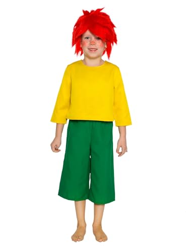 Pumuckl Kinder-Kostüm zweiteilig mit gelbem Shirt mit grüner Hose ohne Perücke (separat erhältlich) Material: 100% Polyester, Hersteller: Maskworld