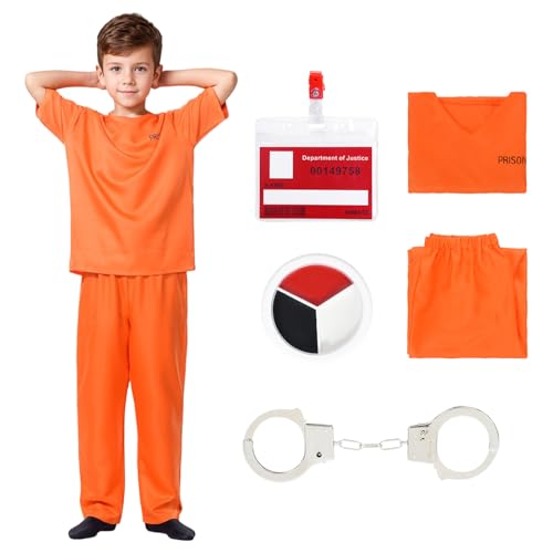 🟠【Gefangenen-Kostüm-Set】Unser Gefangenen-Uniform-Set enthält ein Gefangenen-Uniform + einen Namenskarten-Halter und 2 Accessoires.Das Tragen dieses Gefangenen-Kostüms von uns ist wie in einem echten Rollenspiel-Szenario. Setzen Sie es mit Ihren Freunden ein und beginnen Sie ein unterhaltsames Rollenspiel. 🟠【Qualitätsmaterialien】Gefangenenuniformen sind aus Polyestergewebe, das sicher und sanft ist, der Stoff ist leicht, weich, elastisch und atmungsaktiv. 🟠【Personalisiertes Design】Der Kragen des Häftlingsanzugs ist mit einem V-Ausschnitt versehen, der das An- und Ausziehen erleichtert. 🟠【Lustige Kostüme】Dieses Kostüm von uns perfekt repliziert das Gefängnis Stil der Insassen, können Sie sich von der Menge in diesem Kindern Gefängnis Uniform. 🟠【Anwendbare Anlässe】Ideal für Fasching, Halloween, Kostümpartys, Shows, Gefängnis-Mottopartys, Kostümpartys, Themenpartys, Cosplay und andere Veranstaltungen., Hersteller: shen zhen shi yang shu lin ke ji you xian gong si