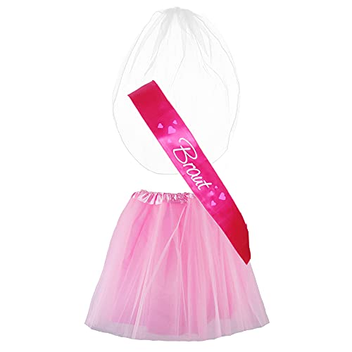 Passend für Damen-Konfektionsgröße 32 bis 40. Hübsches JGA-Kostüm für die Braut - Outfit-Set für den Junggesellinnenabschied. Mit diesem zauberhaften Junggesellenabschied-Kostüm wird eure Braut zum absoluten Hingucker: das Outfit-Set besteht aus einem Tütü (Größe wählbar), einer Schärpe und einem Schleier mit Steckkamm Schärpe: die hübsche Schärpe ist der Blickfang der JGA-Verkleidung eurer Braut. Sie ist reißfest vernäht und kann sofort umgelegt werden. Es handelt sich um eine Einheitsgröße (Länge: 150 cm, Breite: 10 cm). Material der Schärpe: 100% Polyester. Tütü: Der Tüllrock ist blickdicht und besteht aus 4 Lagen - die untereste Lage ist aus einem blickdichten Polyester-Stoff, darüber befinden sich 3 Lagen Tüll; die Tüll-Lagen sind ca. 38 cm lang, der blickdichte Unterrock ist ca. 35 cm lang. Schleier: der Kopfschmuck rundet das Outfit eurer Braut ab. Der ca. 56 cm lange weiße Schleier wird anhand eines integrierten Steckkamms im Haar befestigt., Hersteller: Partybob
