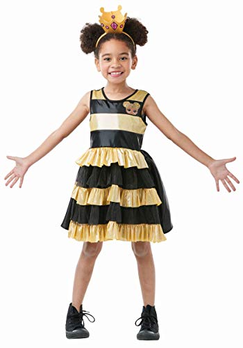 Offizielles Lizenzprodukt LOL Surprise Produkt, Queen Bee Deluxe Kostüm Inklusive Deluxe-Kleid, Puppen-Kunstwerk auf der Brust, Rock mit Rüschen und passendem Haarband/Krone Erhältlich in 3 Größen: M Alter 5-6, L Alter 7-8, Alter 9-10 Rubie's offiziell lizenzierte Produkte sind getestet und erfüllen alle erforderlichen europäischen und britischen Standards, einschließlich EN71 und REACH Britisches Design und Größe des Produkts. Bitte beachten Sie die Größentabelle auf dem Bild, Hersteller: RUBIES