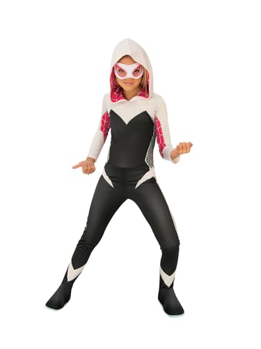 Rubies Spider Gwen Classic Mädchen Jumpsuit mit angebrachter Kapuze, Stiefelüberzug und Augenmaske, offizielles Marvel-, Spider-Mann-Kostüm, für Karneval, Halloween, Weihnachten und Geburtstag