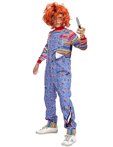 Spooktacular Creations Halloween Chucky Kostüm für Kind, Kinder spielen Chucky Kostüm Jumpsuit und Perücke Outfit (Large (10-12 yr))
