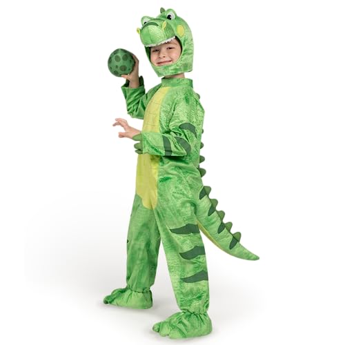 Unisex T-Rex Kostüm für Kinder, bestehend aus einer Dinosaurier-Kapuze, einem Overall mit angebrachtem Schwanz und einem Plüschei! Kid T-Rex Dinosaurier-Kostüm Deluxe Set. Realistisch aussehend, super langlebig. Überlegene Qualität. 100% Polyester. Kindersicher: Ungiftig. Erfüllt die US-Spielzeugnorm. Safety Test Approved. Super Value Pack für Rollenspiele. Hervorragend geeignet für Halloween-Zubehör Kostüme, Verkleidungspartys, Dinosaurier-Themenpartys, Dinosaur-Kostüm, Kinder-Dinosaurier-Kostüm, Baby-Dinosaurier-Kostüm, Dinosaurier-Kostüm für Jungen Dinosaurier-Party-Kostüm, Dinosaurier-Halloween-Kostüm für Kinder, Dinosaurier-Rollenspiel, Trick or Treat-Kostüm, Theaterspiele, Kindertagesstätte, Pretend Play, Outdoor-Aktivitäten, Spielzeit jeden Tag und mehr! Größe: Kleinkind (3-4 Jahre), Klein (5-7 Jahre) und Mittel (8-10 Jahre)
