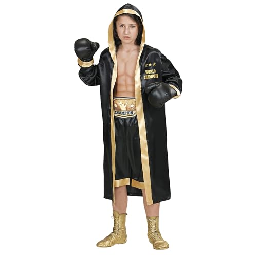 Mit diesem Faschingskostüm verwandelt sich Ihr Kind in einen Boxer World Champion Erhältlich ist das Kostüm für Kinder in der Größe 158 cm Diese Größe entspricht Kindern im Alter von circa 11 bis 13 Jahren Im Lieferumfang enthalten sind der Boxermantel mit Kapuze, die Shorts, der Gürtel und die Boxhandschuhe Die goldenen Verzierungen lassen dieses Outfit besonders hochwertig aussehen, Hersteller: Widmann S.r.l.