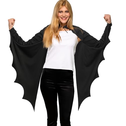 Boyiee Halloween Schwarz Damen Fledermaus Kostüm Erwachsener Vampir Fledermausflügel Umhang Karnevalskleidung Fledermaus Cape Karneval Cosplay-Zubehör(Retro-Stil,45 x 58 x 85 cm)
