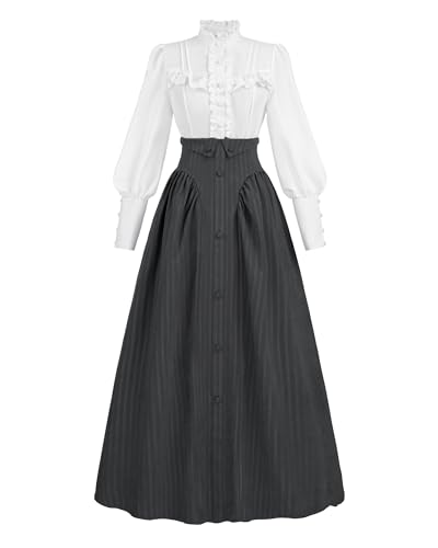 FCCAM Mittelalter Kleidung Damen Festliche Kleider für Damen Viktorianische Kleid Karneval Kostüm Damen nklusive Bluse und Rock, Schwarz, S