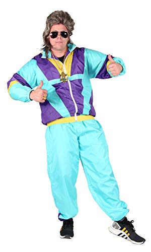 LOS GEHT’S! Du bist auf eine 80er Jahre Party eingeladen und suchst ein passendes Kostüm? Mit dem authentischen 80er Jahre Trainingsanzug für Herren in den Farben türkis-lila-gelb bist du bereit für Jede Bad Taste Motto-Party, für Fasching, zum Karneval! SPASS IN ALLEN GRÖSSEN! Die Lieferung des 80er Jahre Kostüms für Herren umfasst eine Hose und eine Jacke im 80er Jahre Look. Die Trainingsjacke und die Trainingshose des 80s Kostüm ist mit einem Innenfutter versehen. Das 80er Jahre Karnevalkostüm gibt es in den Herren-Größen S, M, L, XL und den Übergrößen XXL, XXXL und XXXXL HINWEIS: Bitte beachten Sie unsere Größentabelle in den Bildern. Die sportliche Herren Verkleidung fällt normal aus. Für Straßenfeste oder den Karnevalsumzug empfehlen wir jedoch eine Nummer größer zu kaufen. So kannst du im Winter einen warmen Pullover oder eine Jacke darunterziehen. Natürlich können auch Damen das Kostüm tragen. LEICHT ANZUZIEHEN! Das 80er Jahre Sportler Faschingskostüm für Herren lässt sich schnell über die Kleidung an- und ausziehen und ist dadurch die perfekte Verkleidung für Verkleidungsmuffel für Straßenfeste oder Festivals. Dank des weichen Stoffs hat das 80s Kostüm einen angenehmen Tragekomfort. NFACH WASCHEN: Falls beim 80er Jahre Karnevalskostüm auf einer Motto-Party oder beim Feiern etwas daneben geht, kannst du es problemlos bei 20-30 Grad mit der Hand waschen. Wenn du dir unsicher bist, frag Mutti ;-) Mittlerweile gibt es über 20 verschieden Styles von diesem Foxxeo Kostüm! Ein ideales Gruppenkostüm für Vereine!, Hersteller: Foxxeo