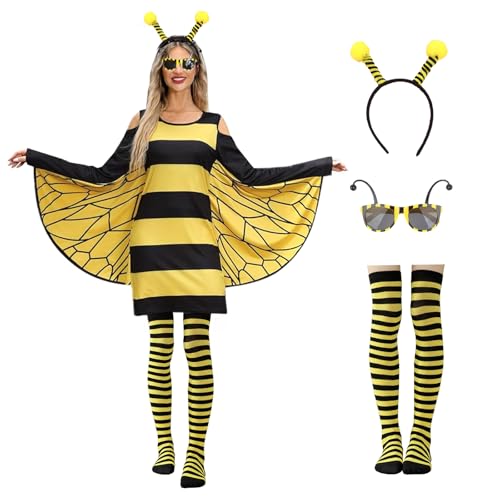 🐝4-TEILIGES BIENENKOSTÜMSET FÜR ERWACHSENE: Das Set enthält 1 bienen haarreif, 1 Bienen gelbes kleid damen mit Flügeln, 1 Bienen overknees strümpfe damen und 1 Paar exquisite Bienenbrille 🐝SIMULIERTES BIENEN HAARREIF UND BRILLE: Dieses exquisite Haaraccessoire ist der Form einer Biene nachempfunden. Es ist mit Bienenantennen ausgestattet und sieht in Kombination mit unserer exquisiten Bienenbrille großartig aus 🐝EXQUISITE BIENENFLÜGEL: Unser Bienenkleid ist mit exquisiten Bienenflügeln gestaltet. Ziehen Sie das Kleid an und öffnen Sie Ihre Arme, wie eine Biene, die mit den Flügeln wedelt, was ein Blickfang ist. 🐝GANZKÖRPER-BIENENANZUG: ein Kleid mit Bienenflügeln und Overknee-Socken, das Ihren Körper umfassender umhüllen kann. Das atmungsaktive Fasermaterial erhöht nicht nur Ihr Anzieherlebnis, sondern macht Sie auch eher zu einer süßen und fröhlichen Biene 🐝MEHRERE PARTYANLÄSSE: Tragen Sie diesen Bienenanzug, um die Aufmerksamkeit aller in der Menge auf sich zu ziehen. Geeignet für viele Anlässe, wie Karnevalspartys, Halloween-Partys, Geburtstagsfeiern, Bühnenauftritte, Performances, Kostümpartys, Cosplay-Partys, Themenpartys usw, Hersteller: JINGTOPS