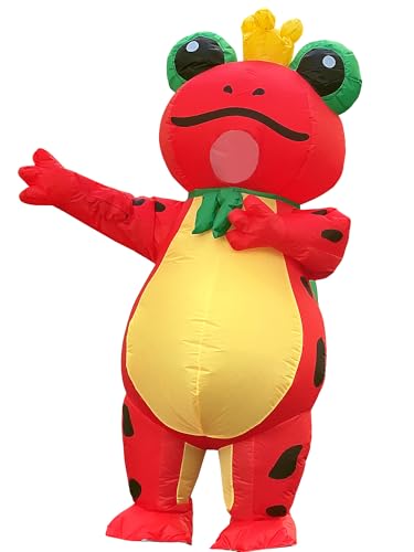 JYZCOS Aufblasbares Froschprinz-Kostüm mit Krone für Erwachsene, niedlich, lustig, Halloween, Tier, aufblasbarer Anzug, Party, Cosplay (rot)