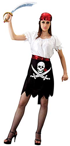 Piratin Damenkostüm bestehend aus Piratenbluse, Piraten Rock und Kopftuch. Passend zu Karneval, Fasching oder auch zu Halloween. Mit diesem Frauenkostüm gelingt die Verwandlung zur sexy Piratenbraut blitzschnell! Reise zurück in eine Zeit voller Abenteuer und Gold, werde zum echtem Seeräuber! Mit verschiedenen Perücken oder einem Piratenhut kann das Karnevalskostüm ganz persönlich individualisiert werden, damit dieses Pirat Kostüm mit Sicherheit zum Hingucker auf der nächsten Party wird. Kleine und Große Größen! Dank der Auswahl von Größe M bis XL kann garantiert jede kleine oder große Frau zur Piratin der 7 Weltmeere werden. Auch ideal als Teil eines Partnerkostüms geeignet! Kann einfach mit einem beliebigem Piraten Kostüm für Herren kombiniert werden und schon kann mit dem ganz persönlinchen Captain Jack auf Schatzjagd gegangen werden, Hersteller: Foxxeo