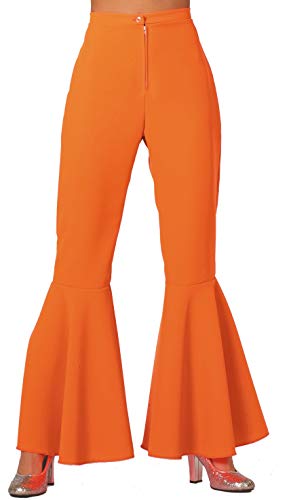 Trendiger Retro Look in Orange: Die flared Hippie Hose kombiniert den angesagten 70er Stil mit einer modernen, figurbetonten Passform Größe 44: Der elastische Bund sorgt für bequemen Sitz, während der Schnitt oben schmal und ab dem Knie weit ausgestellt ist Praktischer Verschluss: Die Hose lässt sich dank Reißverschluss und Knopf vorne mühelos an- und ausziehen Vielseitig einsetzbar: Für Karneval, Mottopartys, 70er- oder 80er-Themenfeiern oder als auffälliges Retro Statement Pflegeleicht und alltagstauglich: Waschbar bei 30°C und bügelfrei – unkomplizierte Pflege für lange Freude an der Hose, Hersteller: Wilbers Karnaval B.V.