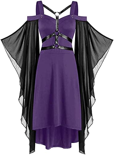 chuangminghangqi Halloween Karneval Kleid Damen 80er Jahre Mittelalter Kleidung Teufel Vampir Kostüm Schulterfreies Mesh Schmetterlingsärmel Gothic Vintage Clothes für Cosplay (Violett-5251, 3XL)