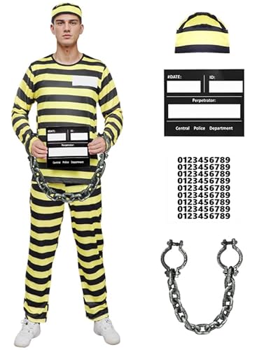 Häftling Kostüm Herren Sträfling Gefangener Kostüm Erwachsene Knast Outfit Gefängniskostüm Prison Costume Cosplay Karneval Halloween (M)