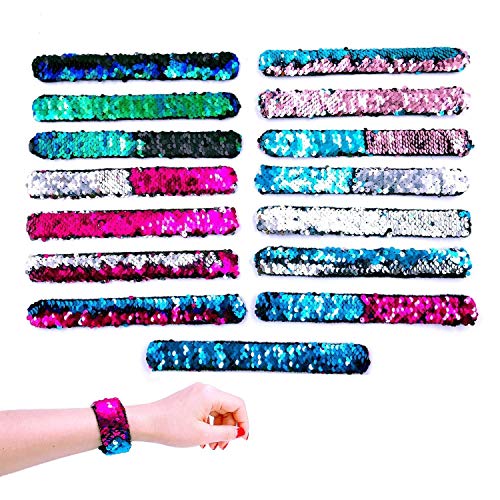 JZK 15 x Meerjungfrau Armbänder Pailletten Slap Armband Spielzeug für Kinder Mädchen Gastgeschenke Party Favors Supplies Geburtstag Geschenke