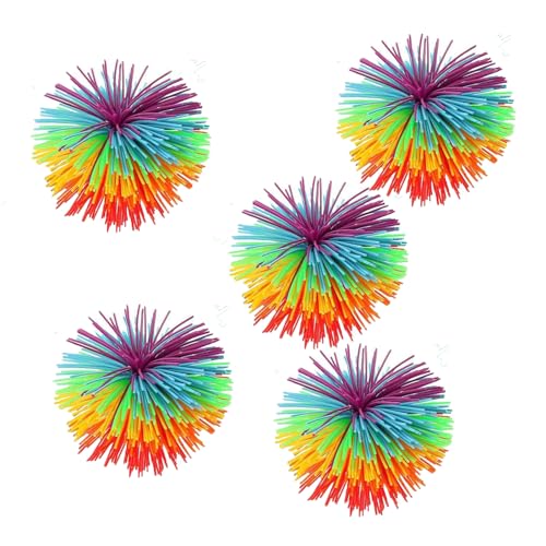 Weiche Pom Bouncy Stress Balls,Bunte Silikon Koosh Ball,Sensory Fidget Stringy Balls,Stringy Balls,Regenbogen Bunt Pom Ball,Bequem Weich Aus Aktives Spielzeug Zum Stressabbau,5 Stücke