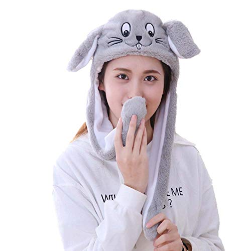 YEKEYI Hasenhut mit Ohren, springender Hasenhut, Tierhut, Pop-Up-Ohren, Plüsch-Hase, Kappe für Damen und Mädchen, Hundegrau, Einheitsgröße