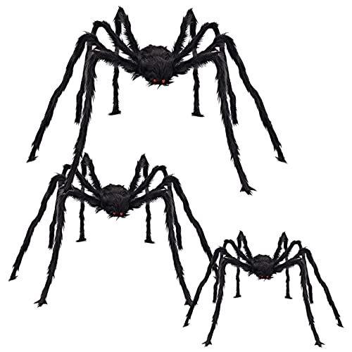 CHBOP 3 groß 150cm 120cm 90cm Gruselige Spinnen Set Halloween Spinnen Riesenspinne Halloween Horror Deko schwarz