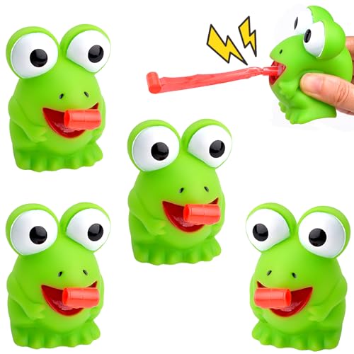 Lustiges Frosch-Quetschspielzeug, Niedliches, Herausstehendes Zungenklemm-Gummi-Frosch-Quietschspielzeug, Sensorisches Spielzeug, Stressabbau-Spielzeug für Kinder und Erwachsene (4PCS)