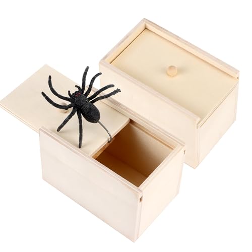 YiliYa Spinne In Box, 2 Stücke Spinne Streich-Box, Scherzartikel zum Erschrecken Lustig Spinne in Einer Holzkiste Spielzeug-Streich, Geschenk für Frau und Mann witzig Überraschungsbox