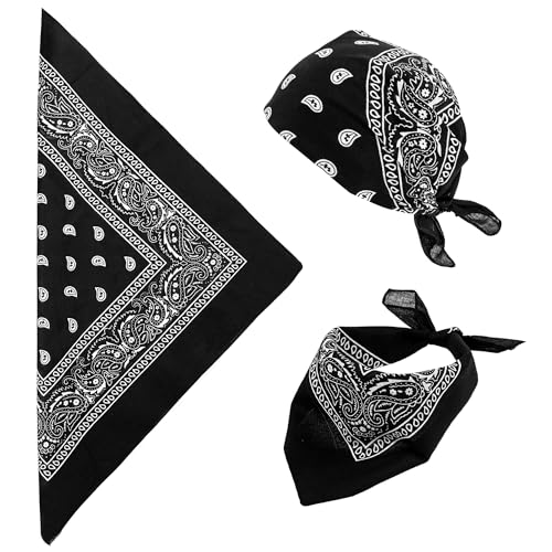 Vielseitiges Accessoire: Dieses schwarz-weiße Bandana ist das ideale Accessoire, um ein Piraten- oder Cowboy-Kostüm bei Ihren festlichen Veranstaltungen wie Karneval oder Cosplay-Abenden zu vervollständigen. Sein klassisches Design und die vielfältigen Muster passen sich mühelos verschiedenen Kostümmustern an und verleihen Ihrem Outfit eine authentische Note. Optimaler Komfort: Hergestellt aus 100 % Baumwolle bietet dieses Bandana außergewöhnlichen Komfort den ganzen Tag über. Seine weiche und atmungsaktive Textur ermöglicht ein Tragen ohne Irritationen, sei es auf dem Kopf oder um den Hals. So können Sie Ihre Aktivitäten in vollen Zügen genießen, ohne sich um Ihr Accessoire sorgen zu müssen. Praktische Maße: Mit einer Größe von etwa 55 x 55 cm ist dieses Bandana groß genug, um auf verschiedene Arten gebunden zu werden. Egal, ob Sie es als Stirnband, Schal oder sogar als Maske tragen möchten, seine Größe ermöglicht es Ihnen, es an Ihre Bedürfnisse anzupassen, während Sie stilvoll und funktional bleiben. Vielfältige Muster: Das Bandana ist in verschiedenen bedruckten Mustern erhältlich, sodass Sie dasjenige auswählen können, das am besten zu Ihrem Outfit oder Ihrer Persönlichkeit passt. Diese Muster verleihen Ihrem Look eine interessante visuelle Dimension und machen Ihr Kostüm noch einprägsamer und einzigartiger. Pflegeleichtigkeit: Dieses Baumwollbandana ist nicht nur stilvoll, sondern auch pflegeleicht. Es kann in der Maschine gewaschen werden, sodass Sie es für jede Gelegenheit sauber und frisch halten können. Seine Langlebigkeit stellt sicher, dass es ein bevorzugtes Accessoire für viele kommende Karnevals und Veranstaltungen bleibt., Hersteller: W WIDMANN MILANO Party Fashion