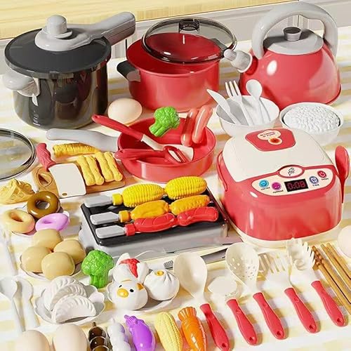 NXPZ 68 Pcs Komplettset für Kinderküchenzubehör, Küchen Rollenspiel Spielzeug, Küchenspielzeug mit Töpfen und Pfannen, Mädchen und Jungen von 3 bis 8 Jahren