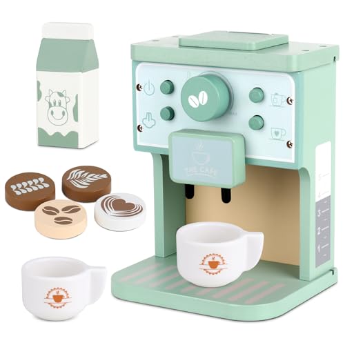 PLLYPE Kaffeemaschine Kinder Holz, spielküche kaffeemaschine Holz, Kinderküche Kaffeeservice Spielset, Geschenke für Kleinkind Jungen Mädchen