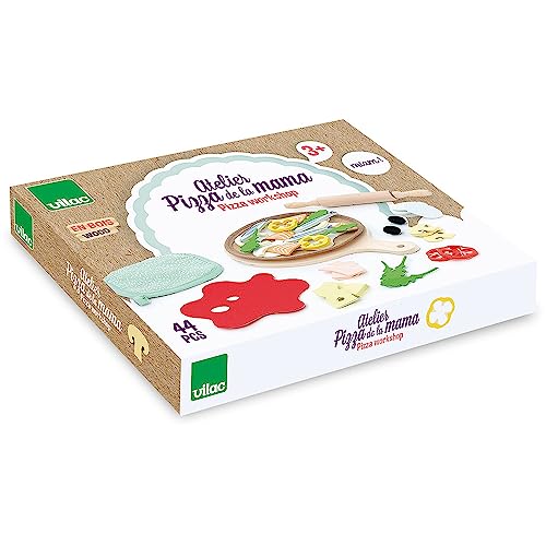 Eine gute Pizza della Mamma, wie in Italien! Was steckt ich in Ihre Pizza? Tomate, Schinken, Pilze?... wie ein echter Pizzaiolo wird Ihr Kind die Paste verteilen, ihn auf sein Pizzabrett legen und die Zutaten nach seiner Kreativität haben. Hummmm, Kuscheltiere und Puppen werden sich freuen. Ein Kunstspielzeug aus Holz und Stoff für den Feinschmecker., Hersteller: Vilac