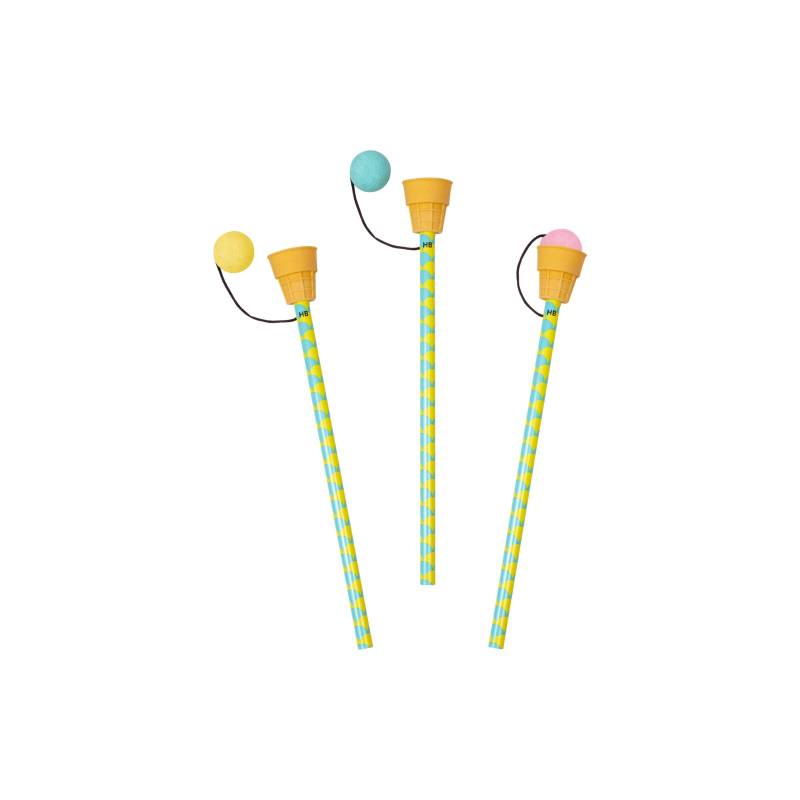 Bleistift (Mine: HB) mit Radierer in Eis-Motiv in 3 Farben (Gelb, Blau, Pink) Produktmaße: ca. 20 cm Material: - Stift: Holz - Radierer: Kunststoff Warnhinweis: Nicht geeignet für Kinder unter 3 Jahren. Erstickungsgefahr durch kleine Teile! Lieferumfang: 1 Bleistift (Farbe des Radierers je nach Verfügbarkeit)