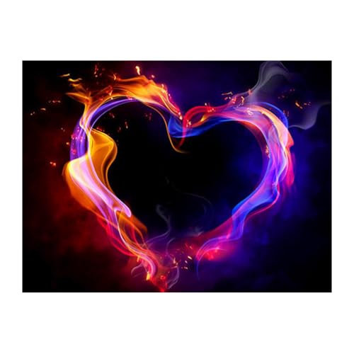 Diamond Painting Set, Bild mit Motiv Feuerherz und Zubehör, Bastelset zum Malen mit Glitzersteinchen, für Kinder ab 5 Jahren
