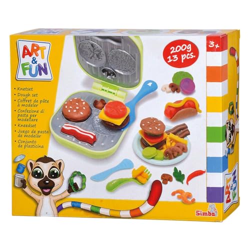 Simba 106324529 - Art und Fun Burger Knetset, 4x50g Knete, Burgergrill, 13 Teile, Kinderknete, Zubehör, ab 3 Jahren