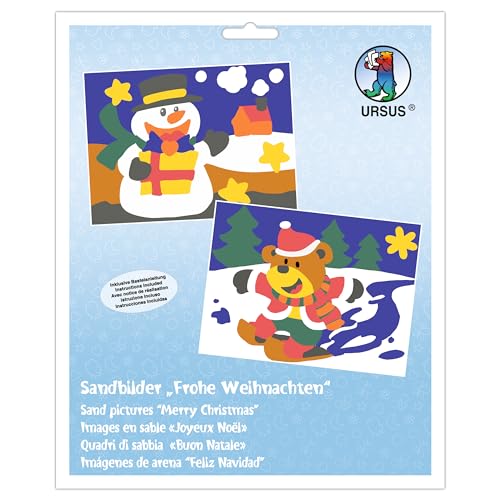 Ursus 8410009 - Sandbilder, Frohe Weihnachten, Bastelset mit 2 Bildern, Sand in 10 verschiedenen Farben, für Kinder ab 3 Jahren