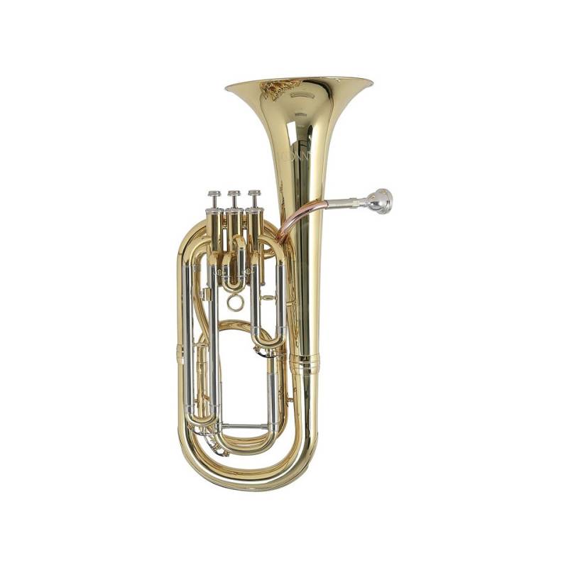 Das Conn BH650 Baritonhorn ist für Einsteiger genauso geeignet wie für Schüler oder als Leihinstrument in Vereinen oder Schulen. Das Baritonhorn verfügt übereine Doppelbohrung und sorgt damit auch im unteren Bereich für ein leichte Ansprache und ein sicheres Spielgefühl. Das Mundrohr ist bei dem BH650 aus Goldmessing und bürgt für eine lange Lebensdauer. Die Edelstahlventile laufen leichtgängig und unterstützen den Musiker auch in dieser Hinsicht. Ein praktisches Conn Leichtetui mit Tragegarnitur sowie ein Vincent Bach 12 C Mundstück runden das stimmige Gesamtpaket ab. · Baritonhorn · Stimmung: Bb · Bohrung: 12,8 - 13,5 mm · Material Korpus: Messing · Oberfläche: Klarlack · Material Mundrohr: Goldmessing · Ventilart: Pumpventile · Anzahl Ventile: 3-ventilig · Material Ventile: Edelstahl · Durchmesser Schallbecher: 211 mm · Mundstück: Original Vincent Bach 12C · Produktionsland: China · Lieferumfang: Baritonhorn, Mundstück, Leichtkoffer · Baritonhorn