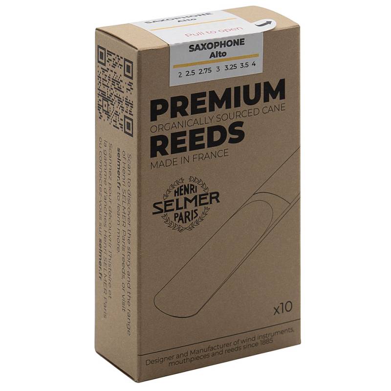 Selmer Premium Alt-Sax Blätter in der Stärke 3.25 · Instrument: Altsaxophon · Material: Rohrholz aus Südfrankreich · Stärke: 3,25 · Zuschnitt: filed · warmer, raumfüllender und flexibler Klang · "Arundo Donax"-Rohr aus biologisch, organischem Anbau mit hohe Faserdichte (ein Jahr längeres Wachstum) · 100 % plastikfreie Verpackung aus Recyclingkarton (FSC Standard) & Kraftpapier · kompostierbarer Blatthalter aus Bio-basiertem Material · Verpackungseinheit: 10 Stück · Produktionsland: 100 % Made in France mit kurzen Lieferketten · Blätter