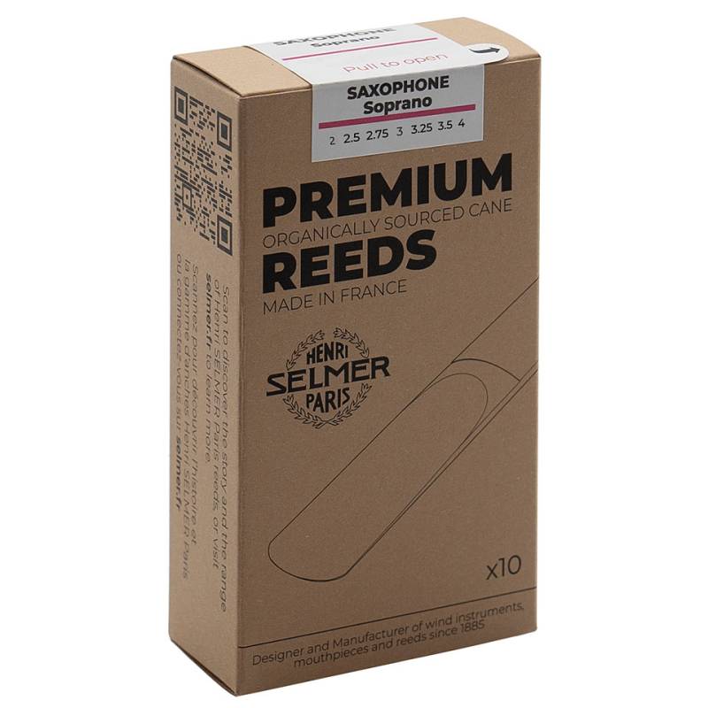 Selmer Premium Sopran-Sax Blätter in der Stärke 2.75 · Instrument: Sopransaxophon · Material: Rohrholz aus Südfrankreich · Stärke: 2,75 · Zuschnitt: filed · warmer, raumfüllender und flexibler Klang · "Arundo Donax"-Rohr aus biologisch, organischem Anbau mit hohe Faserdichte (ein Jahr längeres Wachstum) · 100 % plastikfreie Verpackung aus Recyclingkarton (FSC Standard) & Kraftpapier · kompostierbarer Blatthalter aus Bio-basiertem Material · Verpackungseinheit: 10 Stück · Produktionsland: 100 % Made in France mit kurzen Lieferketten · Blätter