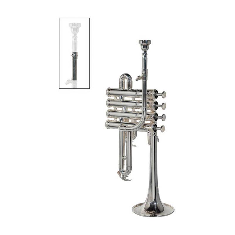 Die Stewart Ellis SE-1700-S ist eine versilberte Piccolo-Trompete in Hoch Bb/A. Durch ein zweites, auswechselbares Mundrohr ist diese Piccolo-Trompete, wie die meisten anderen auch, von Bb auf A umstimmbar. Äußerlich im klassischen Piccolo-Stil gehalten ist auch ihr Klang klassisch. Die Versilberung bringt der SE-1700-S die nötige Brillanz und den strahlenden Piccolo-Klang. Neben dem zweiten Mundrohr gehört zu der SE-1700-S ein Leichtkoffer mit Rucksackgarnitur, ein Mundstück und ein Putztuch. · Material Schallstück: Messing · Material Mundrohr: Messing · Oberfläche: versilbert · Stimmung: Bb/A · Ventilart: Pumpventile · Ventilmaterial: Monel · Koffer/Gigbag: Leichtetui mit Rucksackgarnitur · Lieferumfang: Trompete, Munstück, Etui · Produktionsland: China · Piccolo Trompete