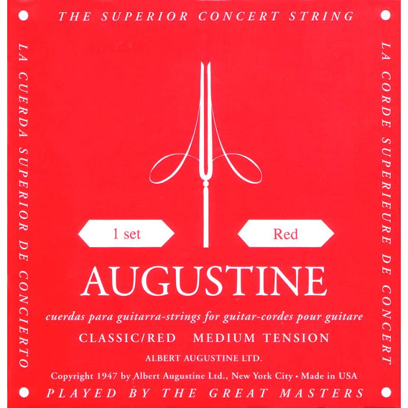 Augustine stellt vier verschiedene Serien an Konzertgitarrensaiten bzw. Nylonsaiten her. Die bekanntesten Sätze (CLASSIC: schwarz, rot und blau) haben identische Diskantsaiten in normaler Spannung. Die drei Sätze unterscheiden sich durch die verschiedenen Spannungen der umsponnenen Bass-Saiten (schwarz = light/normal, rot = medium, blau = high). Diese Logik setzt sich in allen folgenden Serien fort. · Länge: 4/4 · Saitenstärke: Medium Tension · E1-Saite: .028 · H2-Saite: .032 · G3-Saite: .040 · D4-Saite: .0295 · A5-Saite: .035 · E6-Saite: .0425 · Saiten Konzertgitarre