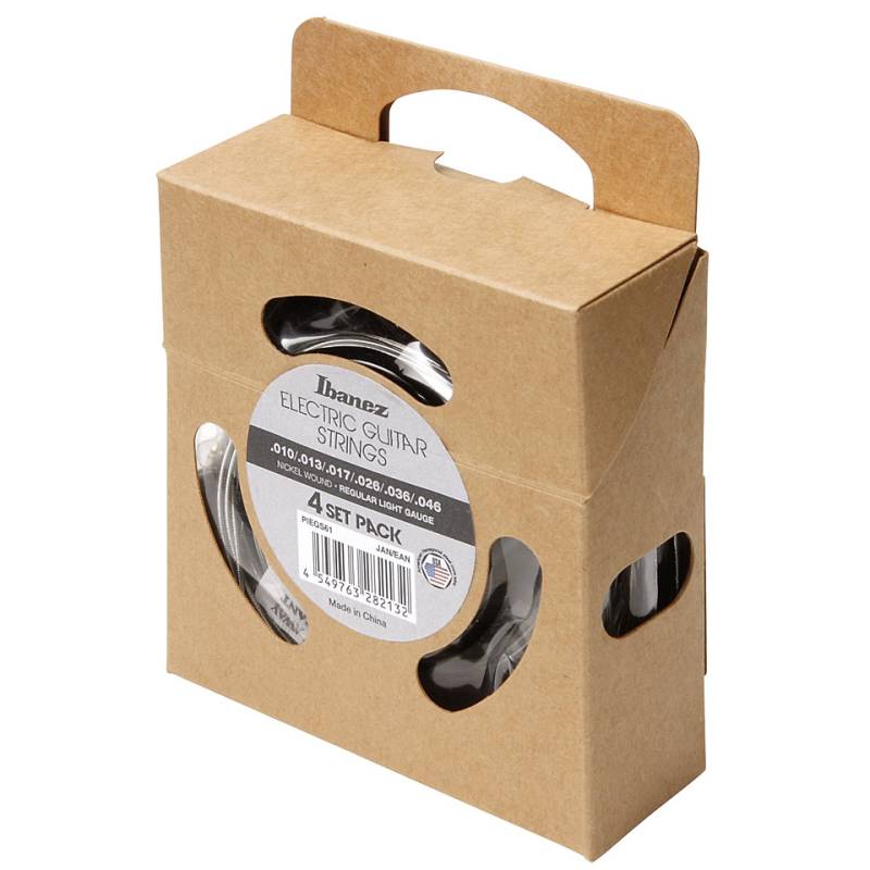 Mit dem IEGS61 hat Ibanez einen klassischen Nickel Wound Saitensatz in 010-046 Stärke im preisgünstigen 4er Pack Programm. · 4 Saitensätze · Saitenanzahl: 6 · Saitenstärke: .010 - .046 · Material: Nickel Wound · E1-Saite: .010p · H2-Saite: .013p · G3-Saite: .017p · D4-Saite: .026w · A5-Saite: .036w · E6-Saite: .046w · Produktionsland: China · Saiten E-Gitarre