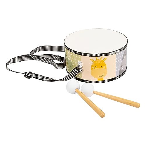 Kindertrommel mit Giraffe, Nilpferd, Affe, Krokodil und Co. im Wildnis-Look Ideal zum Sammeln erster musikalischer Erfahrungen und zur musikalischen Früherziehung Kindgerecht gestaltet und verfügt über einen längenverstellbaren Trageriemen Mit schaumstoffüberzogenen Trommelschlägeln aus Holz Maße: Trommel ca. 20 x 20 x 10 cm, Schläger Länge: ca. 18 cm, Hersteller: small foot
