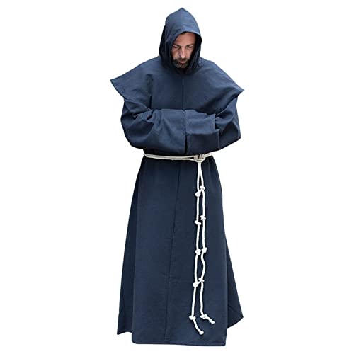 AIHERQG S-5XL Mönch Kostüm Religiöse Heilige Robe Männer Priester Kapuzenhaube Halloween Outfit(Blue1,XL)