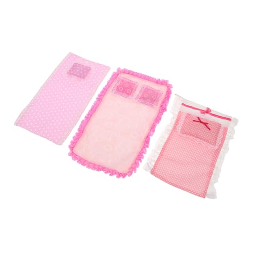 BESPORTBLE 3 Sätze Maßstab mit Bettlaken und Kissen Weiche Farben Passend für Puppenhaus Möbel und Dekoration