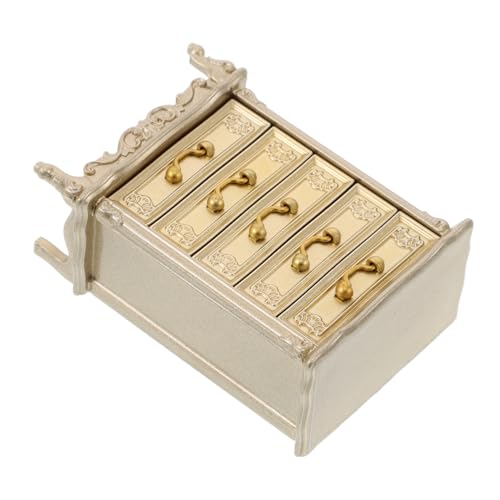 BESPORTBLE Dekoratives Mini Puppenhaus Ausstellungsregal Miniaturmöbel Kommode Realistische Puppenhausmöbel Puppenhausschrank Spielzeugmöbel Mini Kommode Für Schlafzimmer Silberner