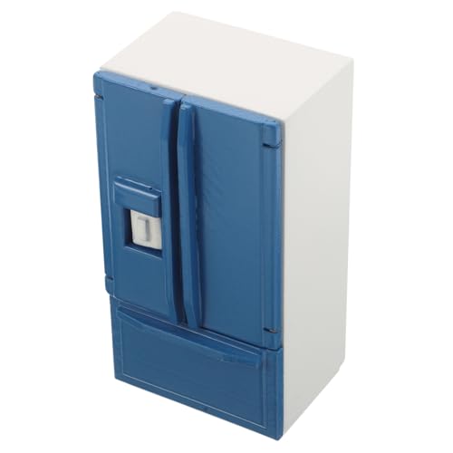 BESPORTBLE Puppenhaus Miniatur Doppeltür Kühlschrank Modell Holz Mini Kühlschrank Realistisches Küchenmöbel für Rollenspiele und Dekoration Weiß Blau
